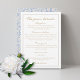 Chic & fresh with youthful charm. This Finer Detail card features a set of trendy and modern imitation gold fonts, against a crisp white background. The back of the card boasts a playful floral blue jacket. Listed are details for the reception, accommodation, transport, attire and wedding website. Personalize to make it your own.