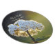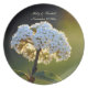 A photograph of clusters of tiny white flowers aglow in the beautiful light just before sundown on a custom melamine plate with template for personalizing to whatever special occasion may come: weddings, anniversaries, graduations and other milestone events. © Little Wing Photography & Design
