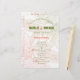 Ceremony program featuring tropical background in palm green and coral. Perfect for your beach or island wedding.