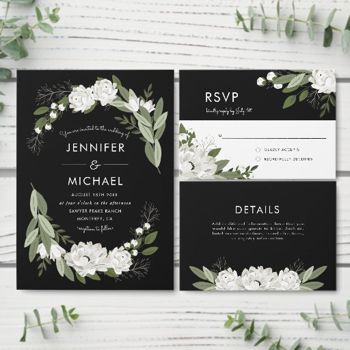 White Floral Wedding sprigs, wedding program template. Customizable. Part of a wedding collection.