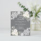For an elegant and romantic 25th wedding anniversary. A gray background decorated with white florals, roses and white lace. Personalize and add your names and details.