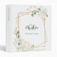 White florals gold geometric frame monogram 3 ring binder