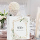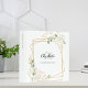 A faux gold geometrical fram decorated with white florals, flowers. Personalize and add your first name, monogram initials and full name.