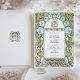 White Florals & Green Elegance Art Nouveau Wedding Invitation