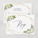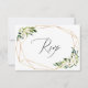 This elegant wedding RSVP card features white florals, a thin gold frame and an elegant script font. Easily edit the back with your information!