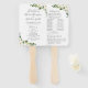 Our white flower and greenery wedding program fans have wording that is completely customizable. Use Zazzle's "Personalize this template" tool to enter your wedding ceremony information. If you need to change the placement of the text boxes, font color or size just click on the "Click to customize further" button to change those things. Be sure to check out our large selection of coordinating items by browsing the Modern White Floral Wedding collection!