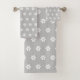 White Flower Pattern on Light Silver Gray Bath Towel Set