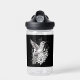 A clear water bottle featuring a detailed hummingbird illustration surrounded by floral designs.