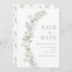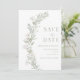 White Flower Wreath Greenery Leaves Save The Date Invitation