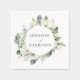 White Flowers and Greenery Personalized Wedding Napkins