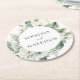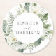 White Flowers and Greenery Personalized Wedding Round Paper Coaster