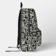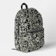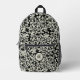White flowers black background printed backpack