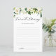 Write your favorite memory of the bride with this customizable memory card. It features watercolor illustrations of greenery and white flowers. Personalize this lemon advice card by adding your event details. This white floral favorite memory of the bride card is perfect for spring and winter bridal showers and wedding parties.