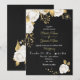 white flowers gold black wedding invitation