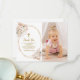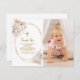White Flowers Gold Photo Girl Baptism 1st Birthday Thank You Card