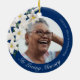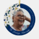 White Flowers Memorial Blue Custom Photo Christmas Ceramic Ornament