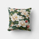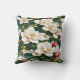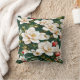 White flowers on a green pattern throw pillow