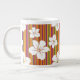 White flowers on a striped background giant coffee mug