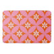 White Flowers on Mid Century Pink Circles Pattern Bath Mat
