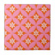 White Flowers on Mid Century Pink Circles Pattern Ceramic Tile