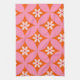 White Flowers on Mid Century Pink Circles Pattern Kitchen Towel
