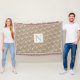 White flowers pattern and monogram rustic throw blanket