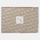 White small flowers brownish rustic floral throw blanket. It showcases a pattern of small flowers and leaves and your monogram on brown background.