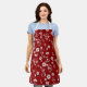 Great color and even though I ordered the kid size, it covers well enough to use during the holidays. I am not a big woman and prefer a shorter apron. I stand 5"6" and the length of the garment goes to mid-thigh. The tie straps fit well at my waist and even though there is no neck strap adjustment, the opening is plenty big enough. I am happy with the size and fit. I am sharing my apron with my 10 year old grandson, too! The color is vibrant and looks good, as shown on the website. The stitching looks strong and reinforced. Photographed is front side and back side of the apron, reinforced straps and coloring. My phone camera may not be the best at showing the details.