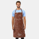 Great color and even though I ordered the kid size, it covers well enough to use during the holidays. I am not a big woman and prefer a shorter apron. I stand 5"6" and the length of the garment goes to mid-thigh. The tie straps fit well at my waist and even though there is no neck strap adjustment, the opening is plenty big enough. I am happy with the size and fit. I am sharing my apron with my 10 year old grandson, too! The color is vibrant and looks good, as shown on the website. The stitching looks strong and reinforced. Photographed is front side and back side of the apron, reinforced straps and coloring. My phone camera may not be the best at showing the details.