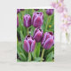 Designed with a close-up view of several deep purple flowers, this card focuses on velvety petals edged with a fine white fringe that looks gently kissed by light ❤️. Slender green stems rise together like close friends, leaning in slightly as if sharing a quiet moment against a softly blurred backdrop of foliage. The lighting is diffused and calm, bringing out the rich purple tones while making the white edges glow with a delicate, jewel-like shine. Near the top, a short Mother’s Day greeting appears in small white lettering, centered and easy to read without distracting from the blooms. A second line of text sits near the bottom in a lighter purple shade, spaced wide and kept subtle so the flowers remain the main focus 🌼. Some blossoms are fully open while others are still curled into buds, creating a gentle sense of closeness and unfolding affection. In the distance, a faint hint of yellow peeks through the green blur, adding a soft contrast behind the purple petals.
