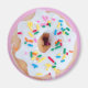 A cake doughnut with vanilla frosting and colorful sprinkles on a magnet. Cute and delectable.