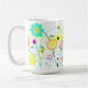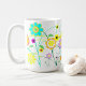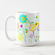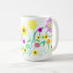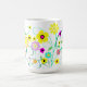 A cheerful white mug wrapped in vibrant, stylized flowers—perfect for adding a pop of color to morning coffee or gifting to someone who loves playful, modern florals.