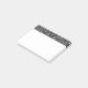 This notepad has a geometric design of sort of flat-ended ovals repeating across the design in white on a field of black.