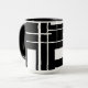 This white on black abstract art coffee mug is made with white geometric shapes on a background of black, created by artist Kirt Tisdale.