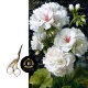 Bring fresh elegance to your creations with this white geranium floral decoupage design. Featuring lush, painterly geranium blossoms with soft pink centers and green leaves over a dark background, this paper is ideal for furniture flips, wedding décor crafts, junk journals, and elegant gift wrapping. Each order includes three generously sized sheets. Copyright Hautegraphique.