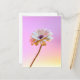 Photographic postcard of white gerbera daisy against an electric pink background