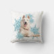 White German Shepherd laying in the Snowflakes Throw Pillow