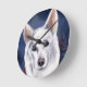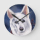 WHITE GERMAN SHEPHERD ROUND CLOCK