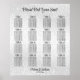 16 Table Seating Chart featured in a white glitter confetti ready for you to personalize. This design works great for a wedding, anniversary, birthday, black tie event and so much more, ✔Note: To start fresh with your text...just delete the text on this product and you can choose your font style, size and color from Zazzle's Design Tool Area. 📌If you need further customization, please click the "Click to Customize further" or "Customize or Edit Design"button and use our design tool to resize, rotate, change text color, add text and so much more.⭐This Product is 100% Customizable. Graphics and / or text can be added, deleted, moved, resized, changed around, rotated, etc... ⭐99% of my designs in my store are done in layers. This makes it easy for you to resize and move the graphics and text around so that it will fit each product perfectly. 📌 (Please be sure to resize or move graphics if needed before ordering) You can also "TRANSFER DESIGN" on other Zazzle products and adjust the design to fit most of Zazzle items. (button is down on the right side of the page) This design is made with high resolution vector and/or digital graphics for a professional print. 📌NOTE: (THIS IS A PRINT. All Zazzle product designs are "prints" unless otherwise stated under "About This Product" on the left side of this page) The design will be printed "EXACTLY" like you see it on the screen and on the product...so please make sure when you do your changes on the resizing of any of the graphics or text that it fits in the areas correctly and that your spelling and wording is how you like it to be in size, color and font. If you have any questions about the "DESIGN ONLY" or need help please contact me at ✉ siggyscott@comcast.net or visit my store link: https://www.zazzle.com/store/designsbydonnasiggy (Copy and Paste) I'll be happy to help. 📌 ALL OTHER QUESTIONS (shipping, refund, the printing, the product, etc...) please contact Zazzle or the Maker ⭐DIRECTLY⭐. Thank you for the support and stopping by my store - DesignsbyDonnaSiggy. © Donna Siegrist⭐⭐⭐ ZAZZLE promises 100% satisfaction. If you don't absolutely love it, Zazzle will take it back! ⭐⭐⭐ 1-888-8ZAZZLE (1-888-892-9953) Phone hours: Mon - Fri: 9AM - 5PM PT (12PM - 8PM ET)