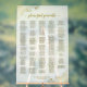 This beautiful seating chart features an elegant design with delicate golden curls and swirls in the corners on a partially transparent white background. The title is written in fancy script calligraphy and reads "please find your table." There is room for up to 300 names in alphabetical order with the names of the happy couple and wedding date at the bottom. Wonderful way to add style and class to your wedding reception while making it easy for your guests to find their seats.