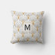 Monogram white, gold, and black art deco fan flowers motif pillow. The design features a 1920s Great Gatsby style fan flowers pattern and your custom initial.