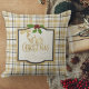 White Gold Black Plaid With Name Christmas Throw Pillow