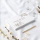 A stylish white background. Personalize and add your names and wedding date. Decorated with foliage