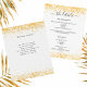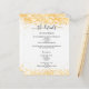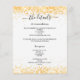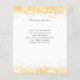 A modern, elegant wedding details/program/timeline. A white background decorated with faux gold confetti. Personalize and add your names and wedding details. Black colored letters.