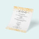 A modern, elegant wedding details/program/timeline. A white background decorated with faux gold confetti. Personalize and add your names and wedding details. Black colored letters.