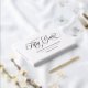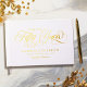 Elegant white and gold wedding anniversary guestbook for a 50th wedding anniversary celebration with a gold foil swirly calligraphy script and your names in an elegant font printed with gold foil. Tasteful and elegant 50th wedding anniversary guestbook personalized with your names, wedding date, and a quote. Gold wedding anniversary celebration guestbook printed with your names in gold foil against a white background.