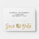 White Faux Gold Foil Save the Date Script Envelopes are perfect for a modern and elegant Save the Date Card. These Baby Shower, Bridal Shower, Bachelorette Party by Mail, Wedding or Delay the Date Envelopes are perfect for that event or party that needs to moved to a new date.