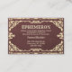 An ornate white-gold frame on a dark leather texture gives an old-fashioned, Victorian look to this business card. Could be used for a variety of businesses. Very rich, elegant, and professional.