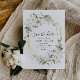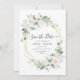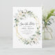 White & gold geometric floral, sage green white typography design with stylish modern lettering. Our beautiful personalized wedding save the date cards feature a stunning design that complements any wedding theme. The front of the card features a personalized text along with a beautiful image.