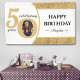 White and gold glitter happy birthday banner for a 50 year old. Sparkly glam design great for women. Customize the age to suit your occasion and add a personal photograph of the recipient. Great for a 50th anniversary or birthday party decoration for a fiftieth birthday bash.